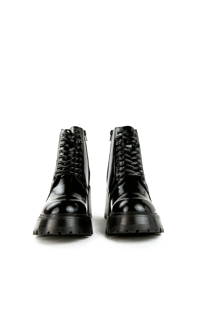 Helter Ankle Boot by Jeffrey Campbell. This chunky lug sole ankle boot features a 3″ heel, 1.5″ platform, and laces up for closure.Â