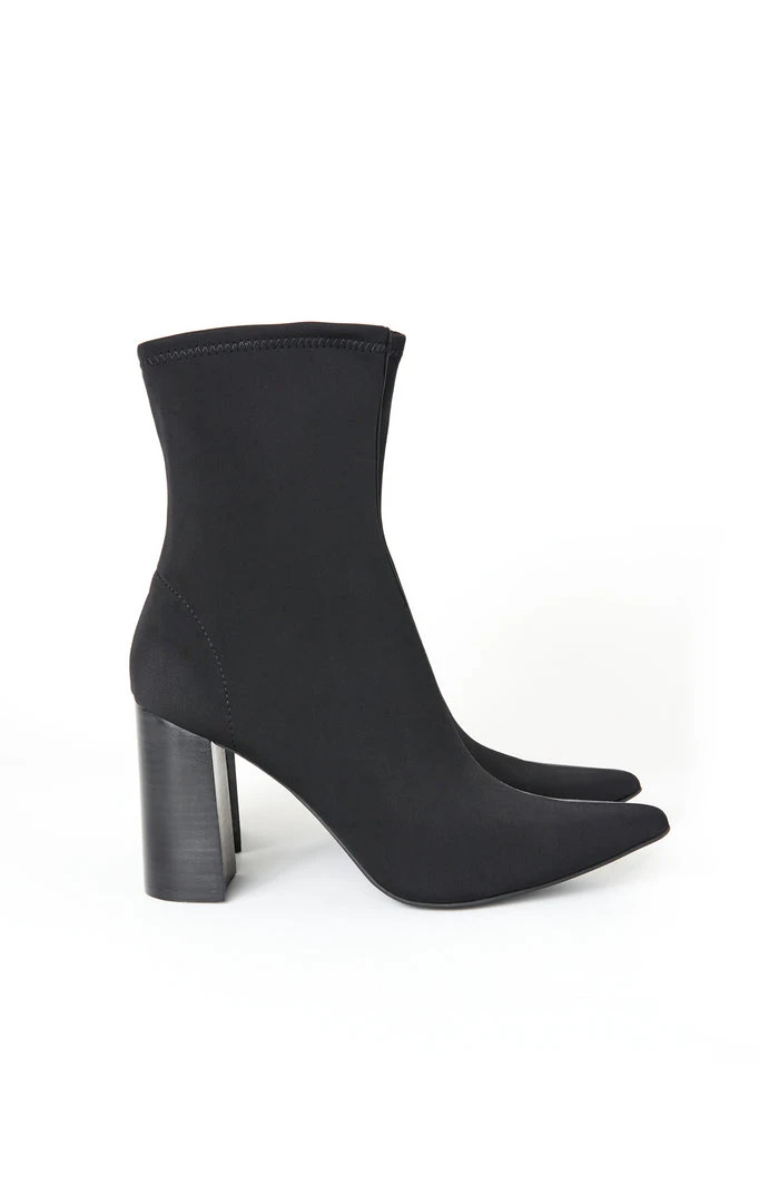Siren Pointed Toe Ankle Boot by Jeffrey Campbell. This boot features a 3.5″ heel and a side zip closure in black.Â