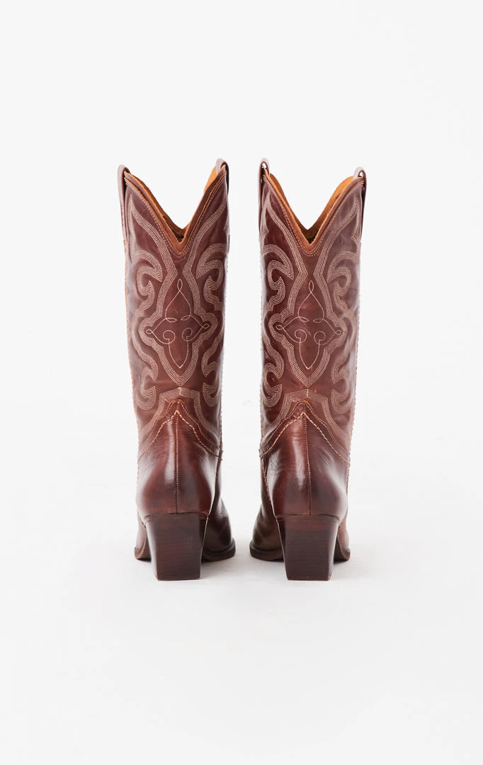 West Cowboy Boot in Brown Leather by Steve Madden. Features a 2.75″ heel.